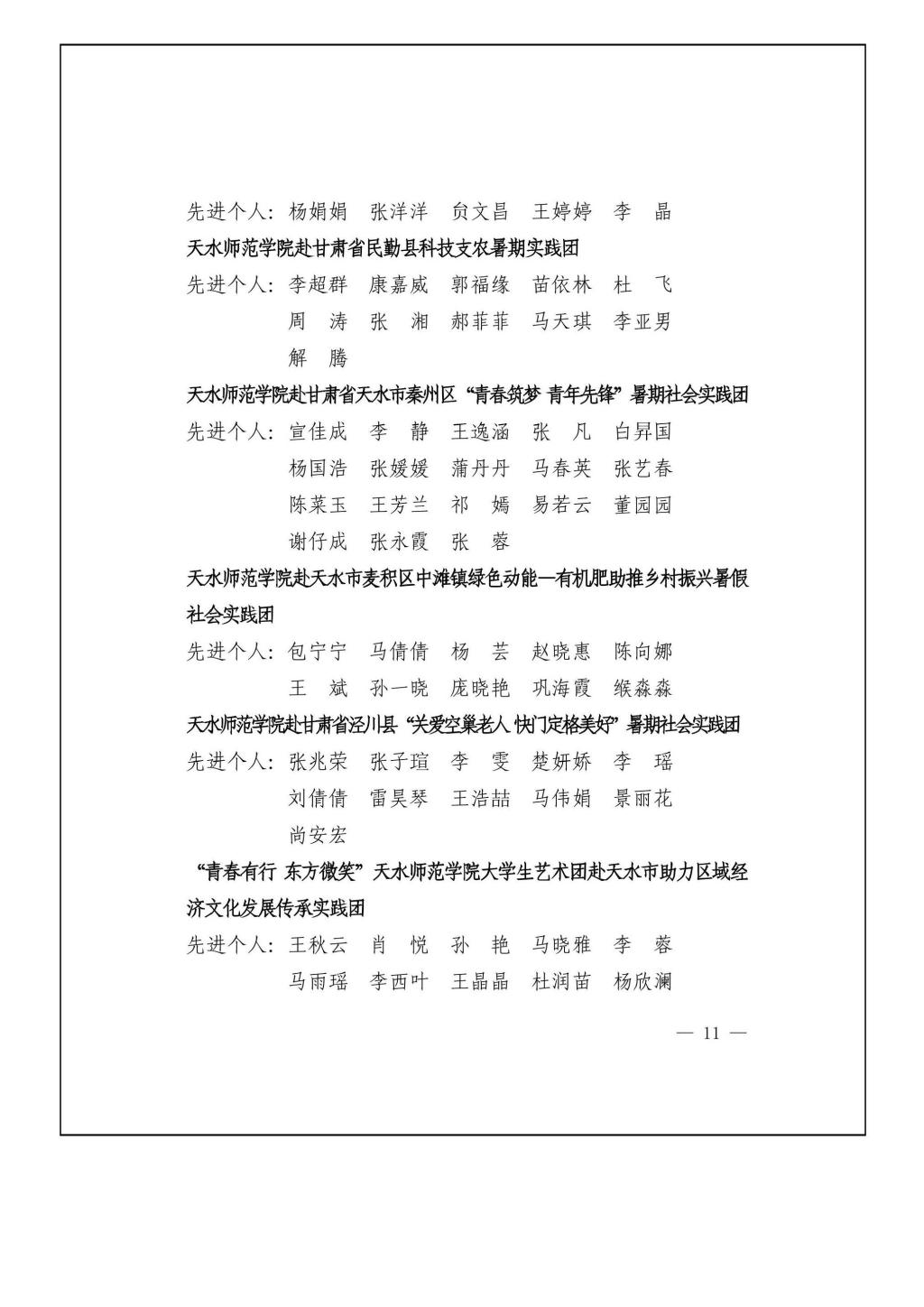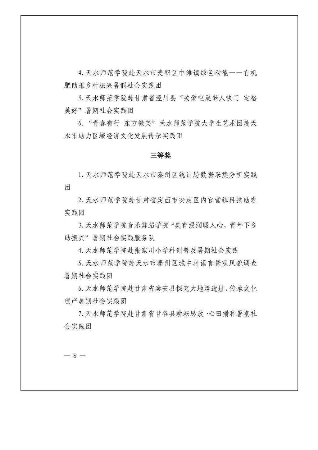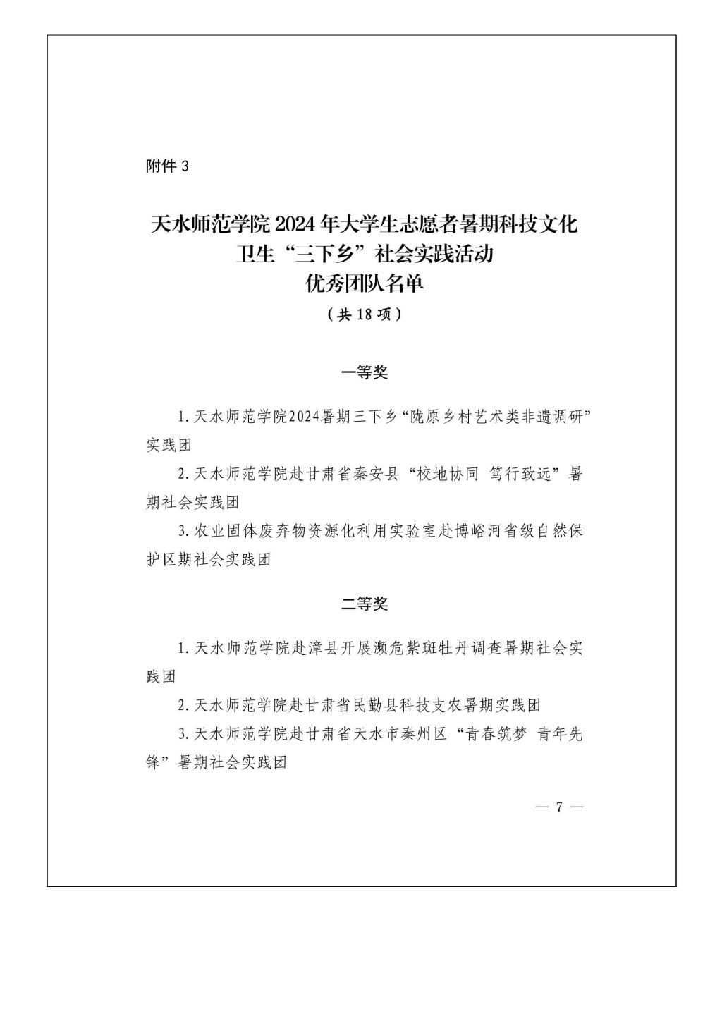 关于表彰天水师范学院2024年大学生志愿者暑期科技文化卫生“三下乡”社会实践活动优秀组织单位、指导教师、优秀团队、先进个人、优秀工作者的决定