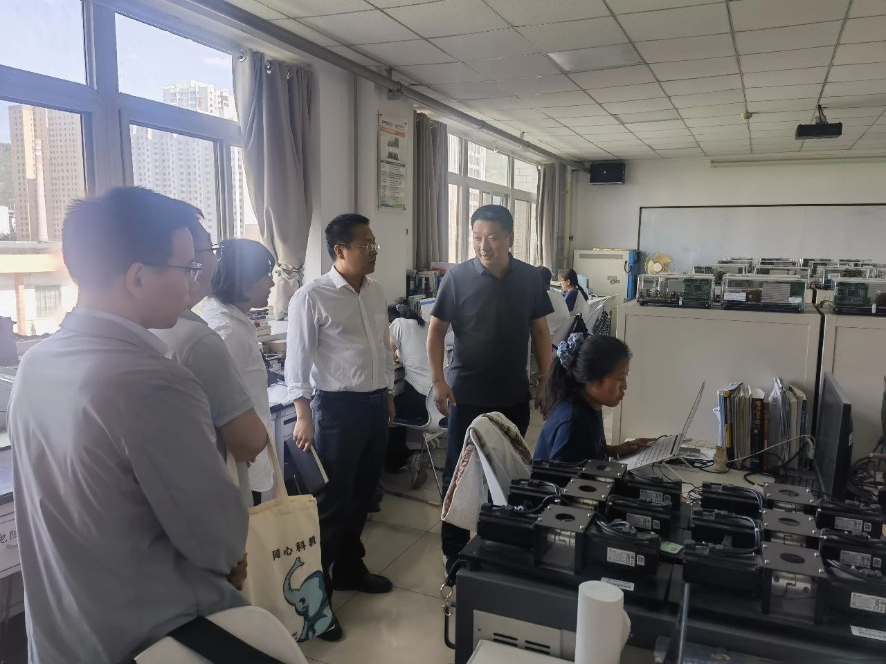 会后,宋佳院长一行前往考察智能开关电源创新实验室,基于PTS平台的开关电源综合人才培育基地。马保慧老师向宋佳院长一行人详细介绍了该基地的培养模式、管理制度、学员选拔等情况。宋佳院长也对该基地给予了高度评价。