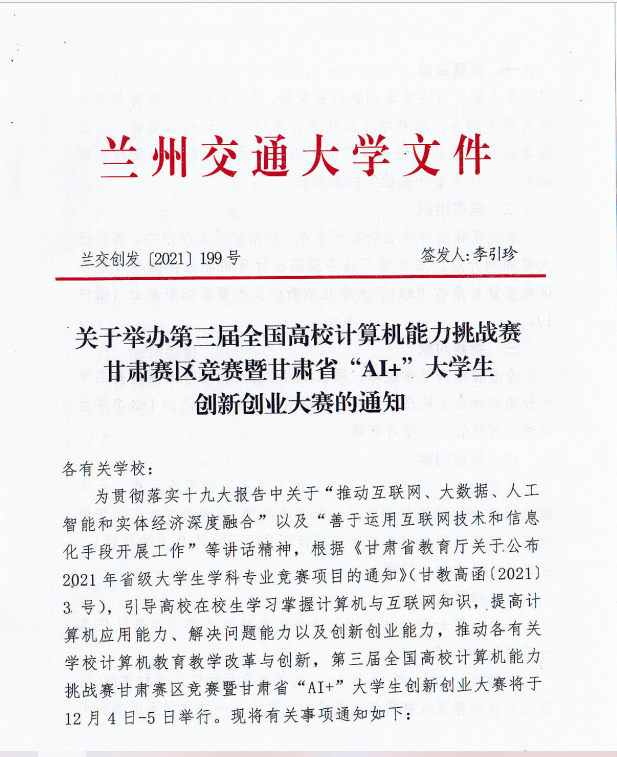 第三届全国高校计算机能力挑战赛甘肃赛区暨甘肃省“AI+”大学生创新创业大赛的通知