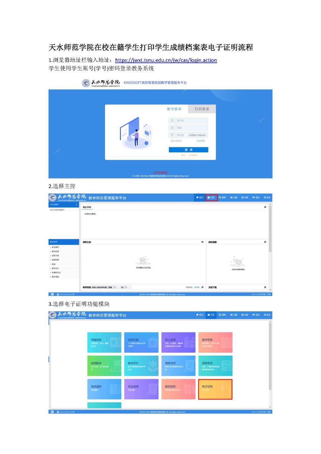 天水师范学院在校在籍学生打印学生成绩档案表电子证明流程